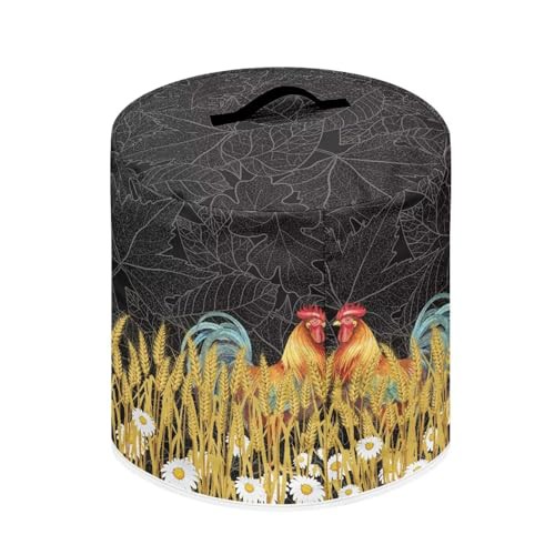 NETILGEN Air Fryer Cover Dust Cover Compatible with 3 Quart Instant Pot, Dust Protection Insulated Kitchen Appliance Cover with Top Handle and Accessories Pockets for Women Gift, Rooster Wheat Daisy