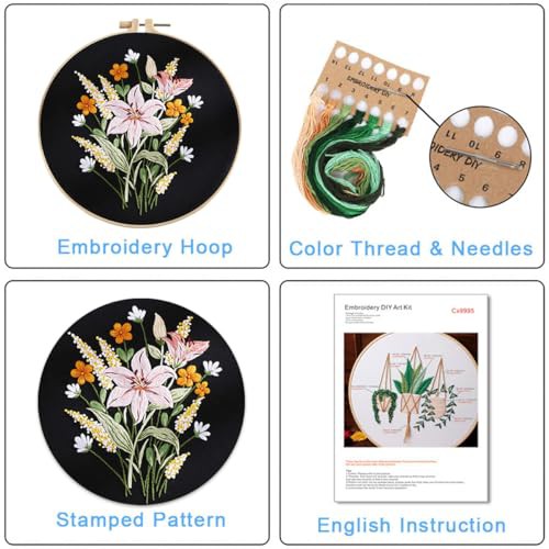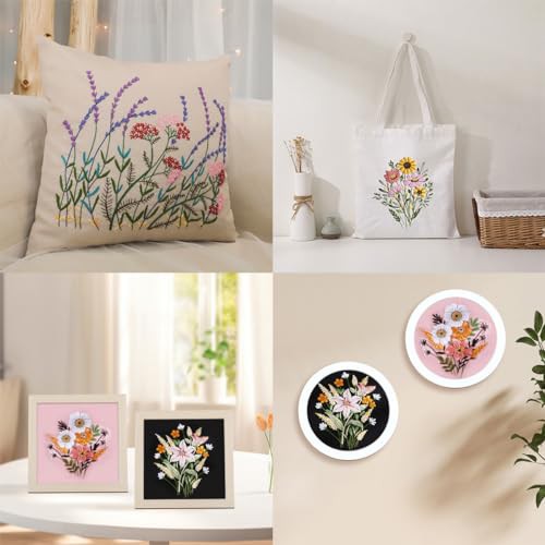 Traziewell Embroidery Kits for Adults Beginners Embroidery Stitch Practice Kit with Floral Pattern with Hoops and Tools for Craft Lover DIY Gift, 0116