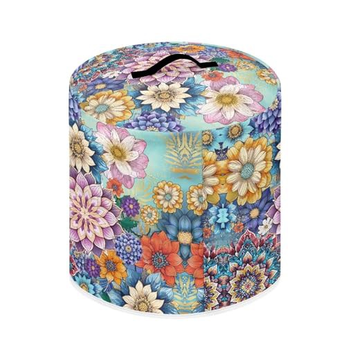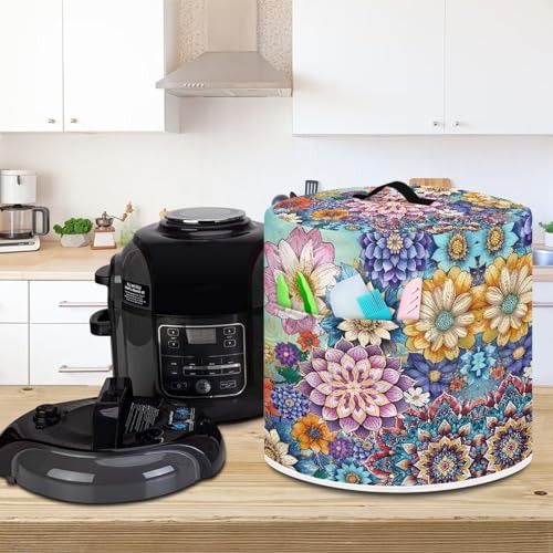 NETILGEN Insulated Pressure Cooker Appliance Cover, Also Fit for Rice Cooker, Air Fryer and Crock Pot, 8 Qt Dust Cover with Pocket for Spoon/Cooking Utensils/Recipes, Blooming Flower Purple Blue