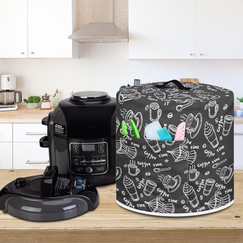 NETILGEN Dust Cover for 3 Quart Instant Pot and Extra Accessories, Dust Protection Easy Clean Pressure Cooker Cover Electric Appliance Cover Air Fryer with Pocket Home Decor, Coffee Time Black