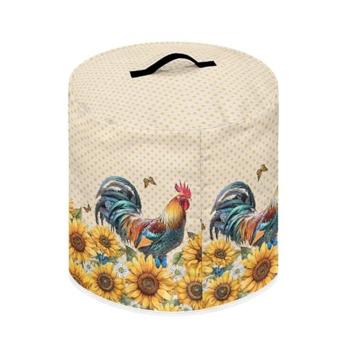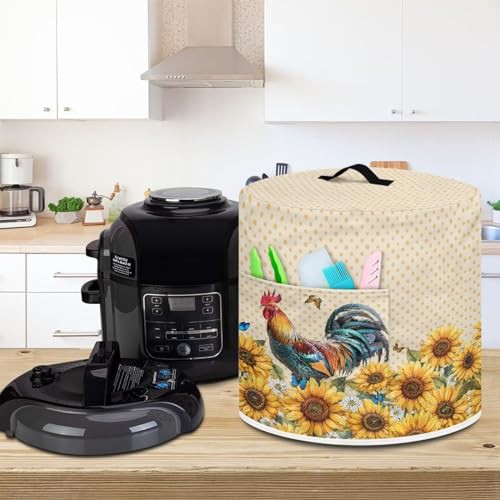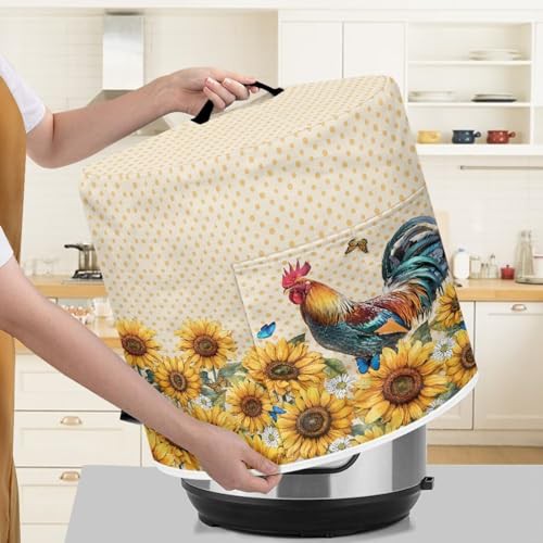 NETILGEN Insulated Pressure Cooker Appliance Cover, Also Fit for Rice Cooker, Air Fryer and Crock Pot, 8 Qt Dust Cover with Pocket for Spoon/Cooking Utensils/Recipes, Rooster Sunflower Polka Dot