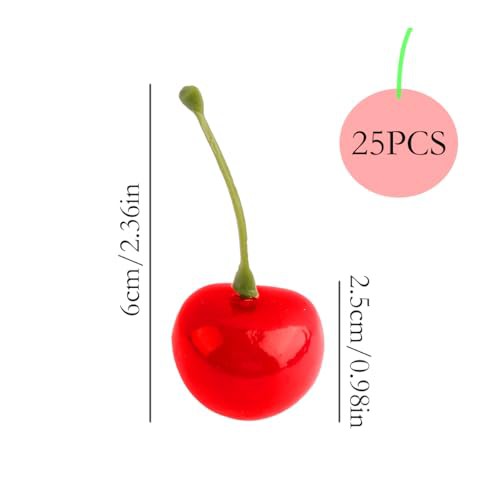 GroveEss 25Pcs Fake Cherry,Artificial Cherries Fruit Decoration,Lifelike Red Black Cherries Models DIY Craft Accessories for Home Restaurant Party Decor Christmas Display Learning Tools Stage Props