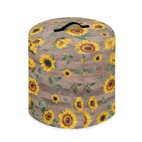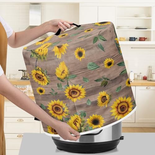 NETILGEN Insulated Pressure Cooker Appliance Cover, Also Fit for Rice Cooker, Air Fryer and Crock Pot, 3 Qt Dust Cover with Pocket for Spoon Cooking Utensils Recipes, Sunflower Rustic Wood Grain