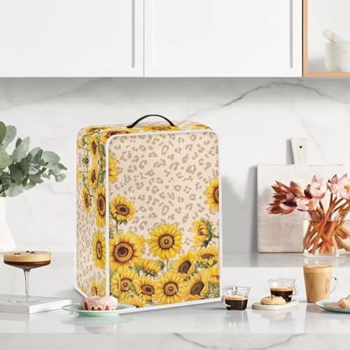 NETILGEN Kitchen Coffee Maker Dust Cover Protection Cover Top Handle Design Heat-Resistant Dust Protection Anti-scratch Coffee Machine Cover Kitchen Appliances Cover, Sunflower Leopard Print
