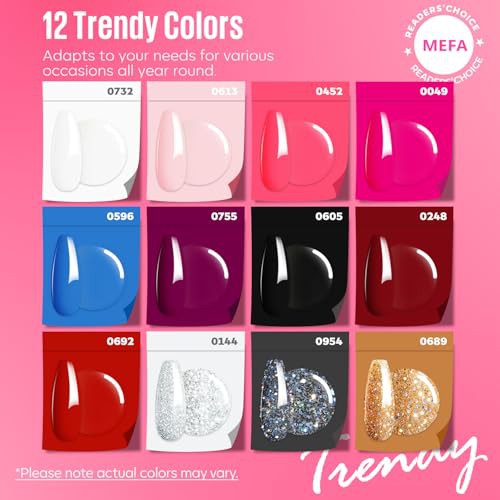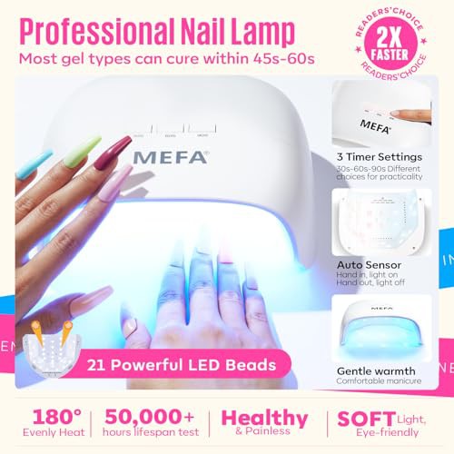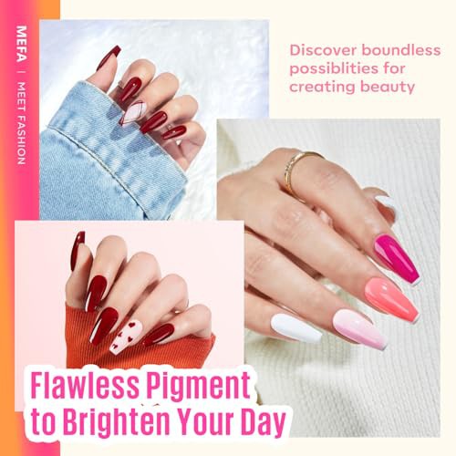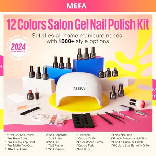 MEFA 34 Pcs Gel Nail Kit with 48W UV Lamp, 12 Colors White Pink Red Glitter Gel Nail Polish Kit with Matte Glossy Gel Top Base Coat Manicure Tools Nail Art Decorations DIY Salon Home