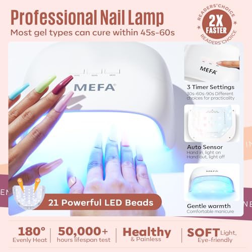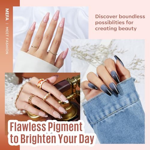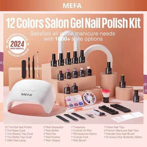 MEFA 34 Pcs Gel Nail Kit with 48W UV Lamp, 12 Colors White Black Brown Nude Gel Nail Polish Kit with Matte Glossy Gel Top Base Coat Manicure Tools Nail Art Decorations DIY Salon Home
