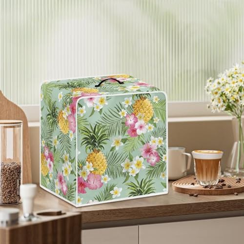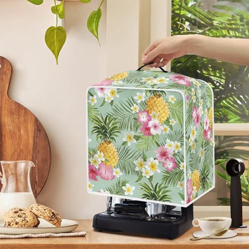 NETILGEN Coffee Maker Dustproof Cover Protective Cover Stain Resistant Dustproof Kitchen Small Appliance Cover with Top Handle for Home Indoor Decor, Pineapple Hibiscus Leaf