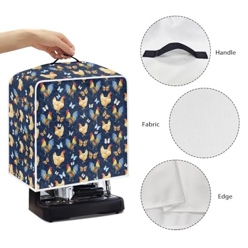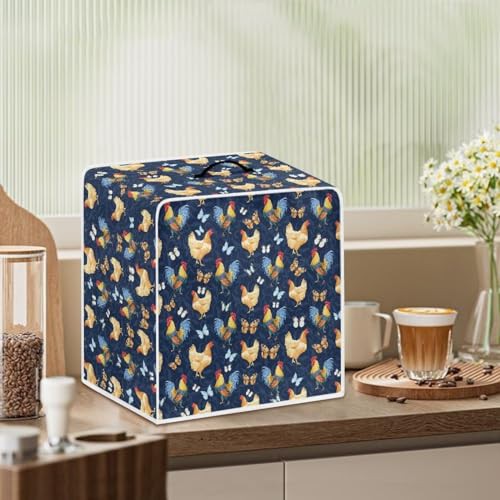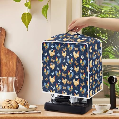 NETILGEN Coffee Maker Cover Fits for Most Standard Coffee Machines, Polyester Foldable Keep Coffee Machine Free From Dust Fingerprint Oil-Stain Dust Resistant Protector, Rooster Blue Butterfly