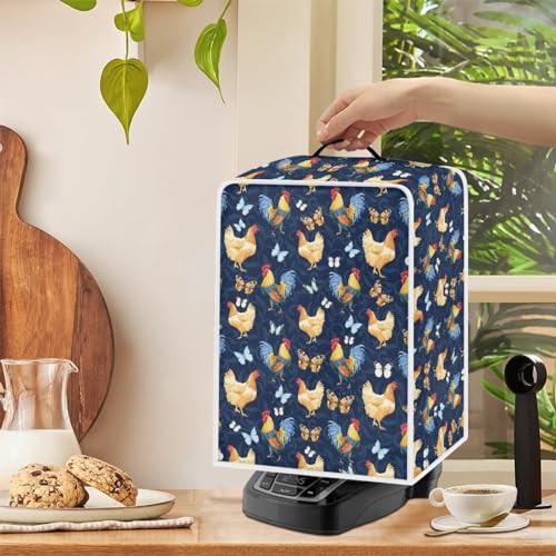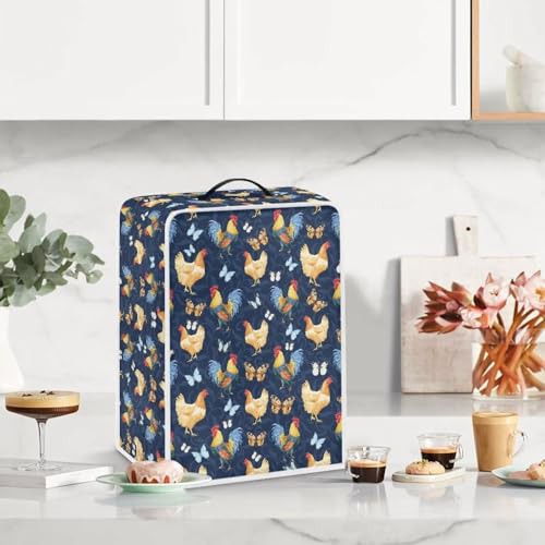 NETILGEN Coffee Maker Cover Fits for Most Standard Coffee Machines, Polyester Foldable Keep Coffee Machine Free From Dust Fingerprint Oil-Stain Dust Resistant Protector, Rooster Blue Butterfly