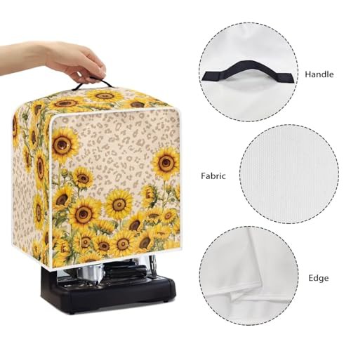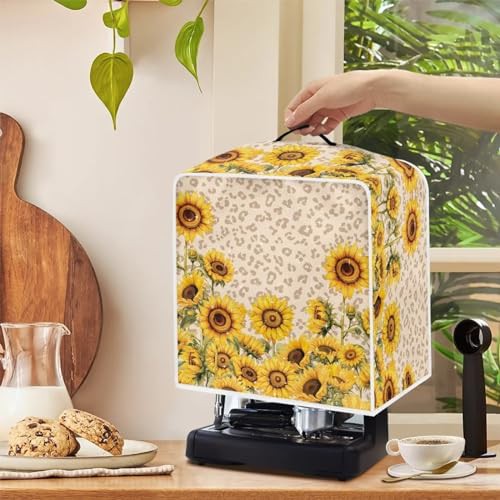 NETILGEN Kitchen Coffee Maker Dust Cover Protection Cover Top Handle Design Heat-Resistant Dust Protection Anti-scratch Coffee Machine Cover Kitchen Appliances Cover, Sunflower Leopard Print