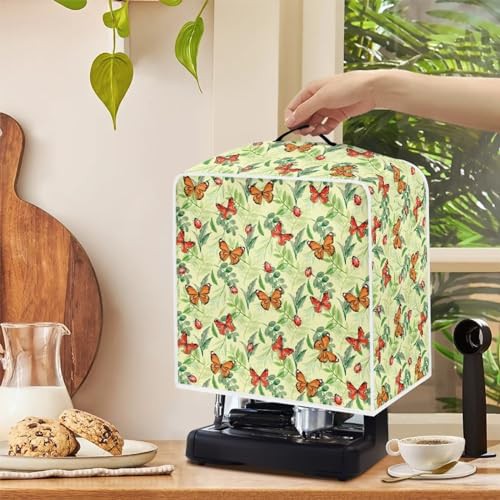 NETILGEN Coffee Maker Cover Home Kitchen Countertop Appliances Cover Fits for Most Standard Coffee Makers, Keep Coffee Maker Free from Stain Liquid Fingerprint, Orange Butterfly Leaf