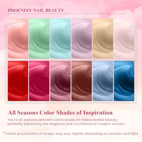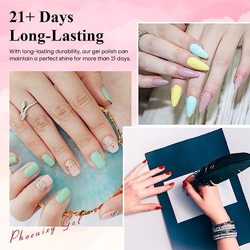 PHOENIXY Gel Nail Polish Kit with U V LED Nail Lamp 12 Pcs Gel Nail Polishes Set All Seasons Gel Polish Glossy Matte Top Coat Base Coat Gel Nail Starter Kit Gift for Women