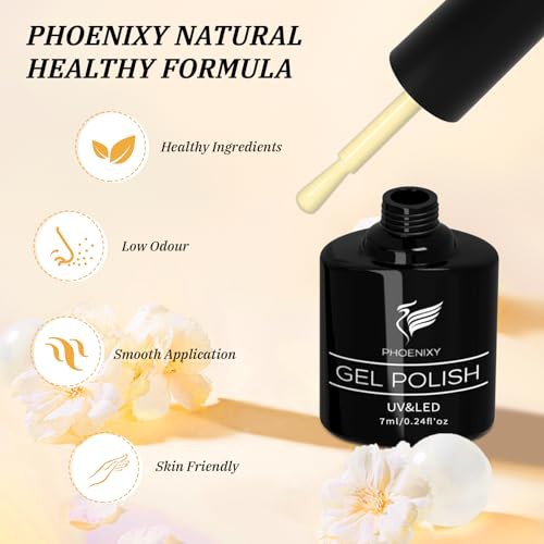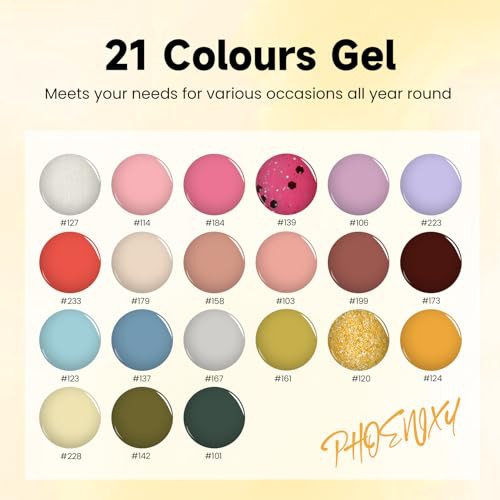 Phoenixy Gel Nail Polish Set - 42 Effects Gel Nail Polish with Nail Lamp Starter Kit Pink Brown Yellow Colours Gel Nail Kit Gift for Women