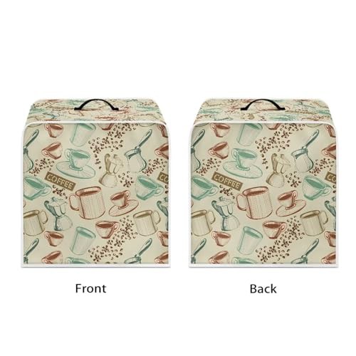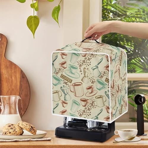 NETILGEN Coffee Maker Cover with Top Handle Polyester Durable Kitchen Small Appliance Cover Dust Protection Stain Resistant Fingerprint Protection Universal Size, Coffee Vintage