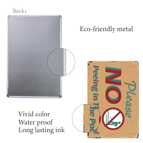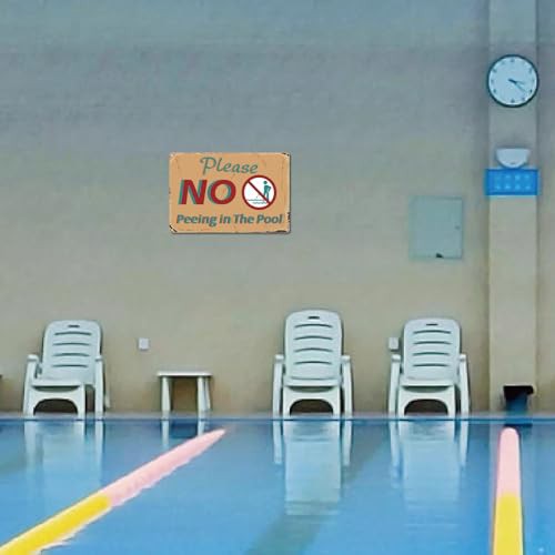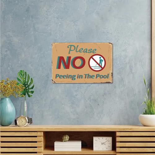 CREATCABIN Please No Peeing in The Pool Metal Tin Sign Vintage Iron Sign Painting Poster Plaque Retro Mural Hanging Wall Art Decor for Seaside Swimming Pool Outdoor Home Bars Cafes Pubs 8x12Inch