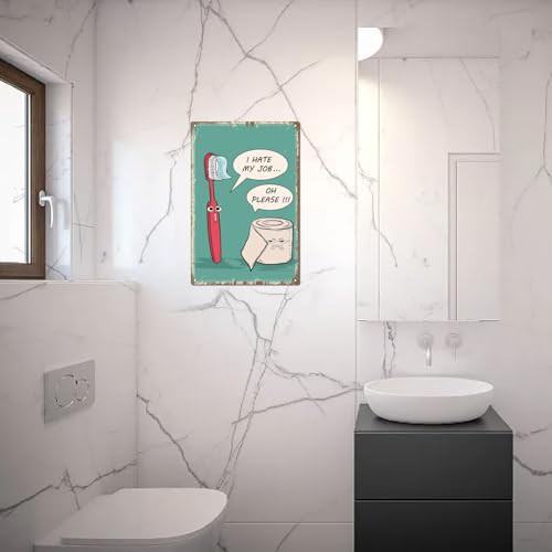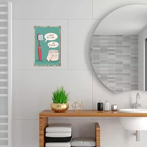 CREATCABIN Funny Toilet Tin Sign Vintage Metal Sign Poster Retro Painting Plaque Sign Iron Toothbrush Toilet paper Poster Wall Decor Mural Hanging for Bathroom Home 12 x 8Inch-I Hate My Job Oh Please