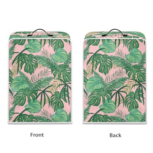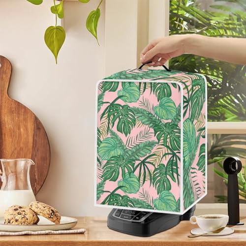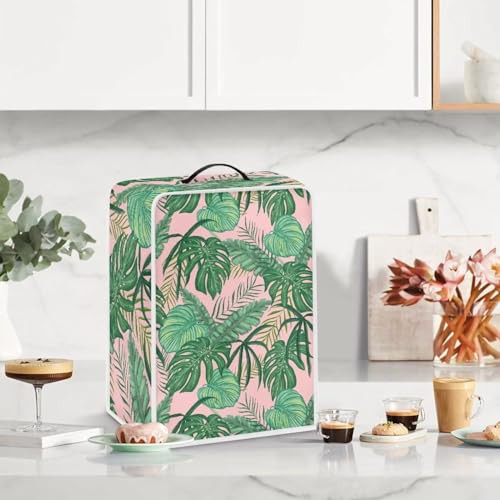 NETILGEN Coffee Maker Dustproof Cover Protective Cover Stain Resistant Dustproof Kitchen Small Appliance Cover with Top Handle for Home Indoor Decor, Tropical Leaf Pink
