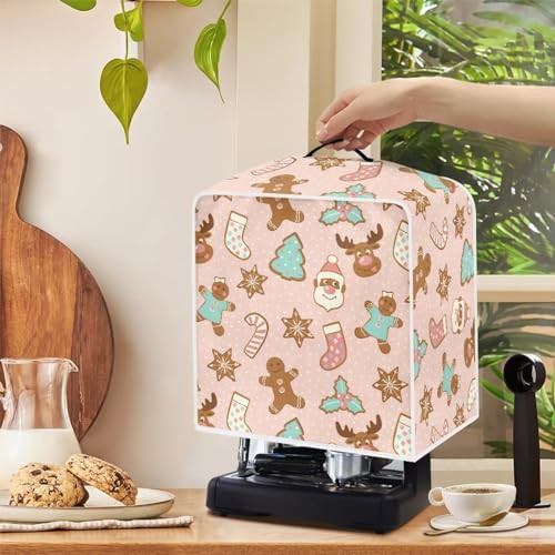 NETILGEN Coffee Maker Dustproof Cover Protective Cover Stain Resistant Dustproof Kitchen Small Appliance Cover with Top Handle for Home Indoor Decoration, Christmas Pink