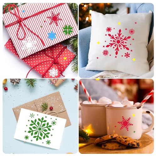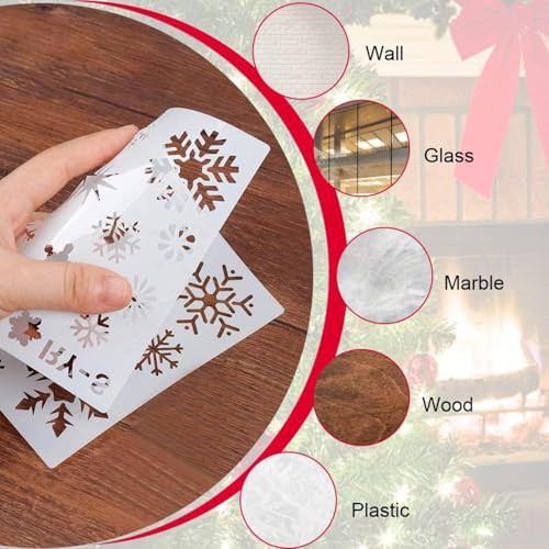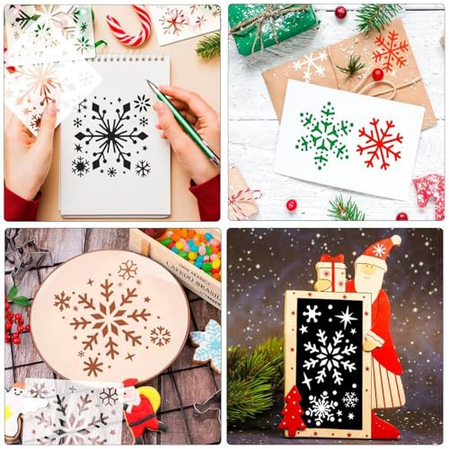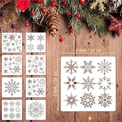 8Pcs Christmas Snowflake Stencil, Large Christmas Stencil Winter Xmas Holiday Snowflake Template DIY Snowflake Stencil for Painting on Wood, Gift Box, Windows, Wall, Door, Home Decor 6 x 6 Inch