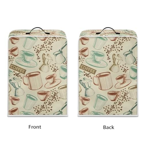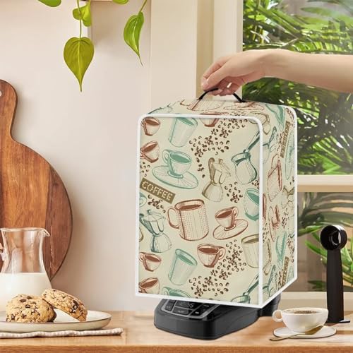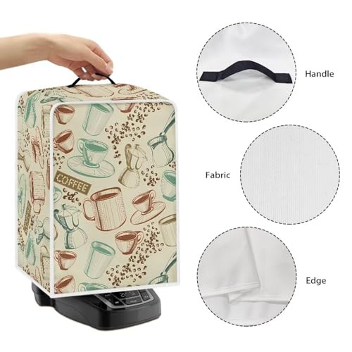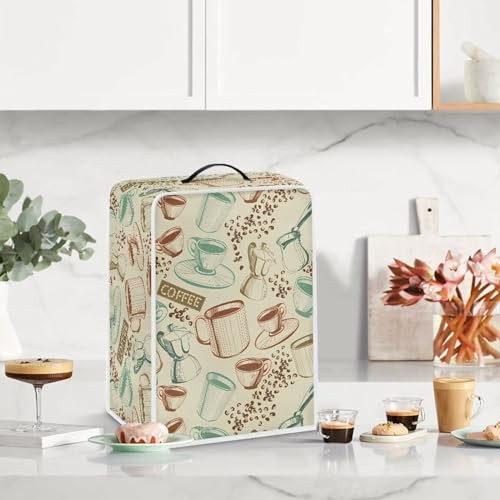 NETILGEN Coffee Maker Cover with Top Handle Polyester Durable Kitchen Small Appliance Cover Dust Protection Stain Resistant Fingerprint Protection Universal Size, Coffee Vintage