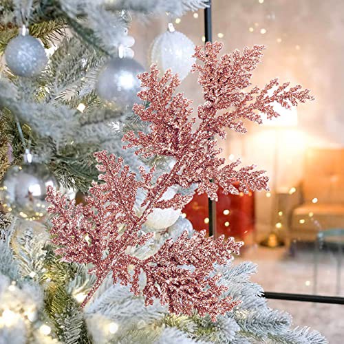NUZBCPETR Christmas branches 10 PCS Glitter Artificial Christmas Tree Pine Leaves