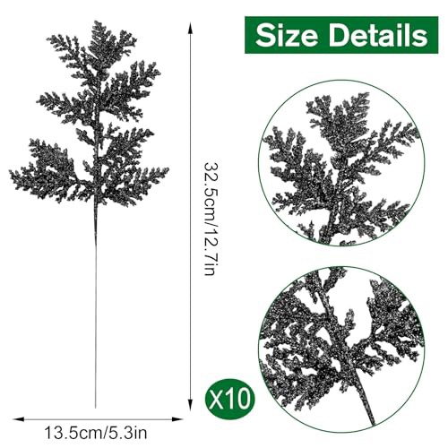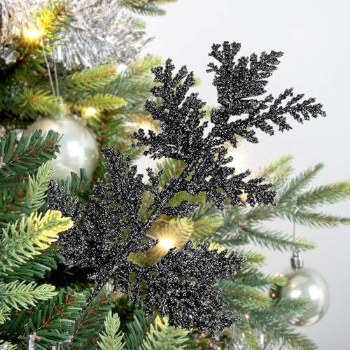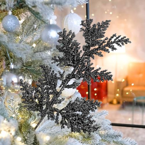 NUZBCPETR Christmas branches 10 PCS Glitter Artificial Christmas Tree Pine Leaves