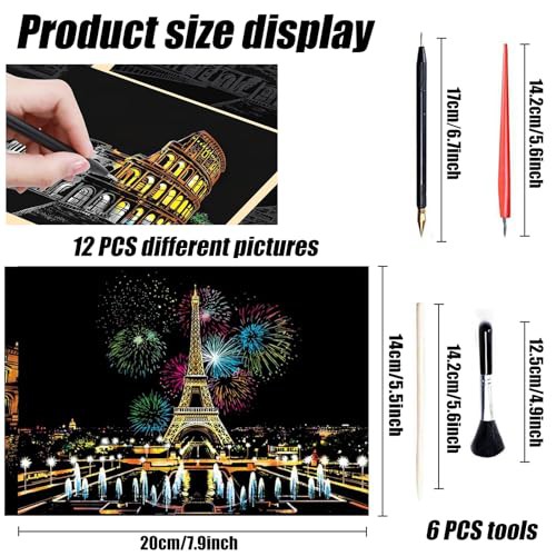 ['【Package Includes】:you will receive 12 sheets scratch art paper (A5: 20 x 14cm/7.8 x 5.5in), 3pcs scratch pens (black, red, white), 3pcs wooden stylus for scratch art, 1pcs cleaning brush, which can meet your needs Different DIY needs.', '【Package Includes】:you will receive 12 sheets scratch art paper (A5: 20 x 14cm/7.8 x 5.5in), 3pcs scratch pens (black, red, white), 3pcs wooden stylus for scratch art, 1pcs cleaning brush, which can meet your needs Different DIY needs.', '【Package Includes】:you will receive 12 sheets scratch art paper (A5: 20 x 14cm/7.8 x 5.5in), 3pcs scratch pens (black, red, white), 3pcs wooden stylus for scratch art, 1pcs cleaning brush, which can meet your needs Different DIY needs.', '【Package Includes】:you will receive 12 sheets scratch art paper (A5: 20 x 14cm/7.8 x 5.5in), 3pcs scratch pens (black, red, white), 3pcs wooden stylus for scratch art, 1pcs cleaning brush, which can meet your needs Different DIY needs.', '【Package Includes】:you will receive 12 sheets scratch art paper (A5: 20 x 14cm/7.8 x 5.5in), 3pcs scratch pens (black, red, white), 3pcs wooden stylus for scratch art, 1pcs cleaning brush, which can meet your needs Different DIY needs.']
