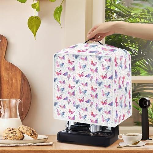 NETILGEN Coffee Maker Cover Home Kitchen Countertop Appliances Cover Fits for Most Standard Coffee Makers, Keep Coffee Maker Free from Stain And Fingerprint, Pink Butterfly