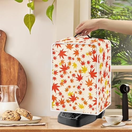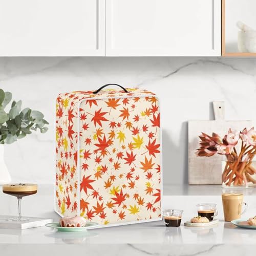 NETILGEN Coffee Maker Cover Fits for Most Standard Coffee Machines, Polyester Foldable Keep Coffee Machine Free From Dust Fingerprint Oil-Stain Dust Resistant Protector, Orange Maple Leaf