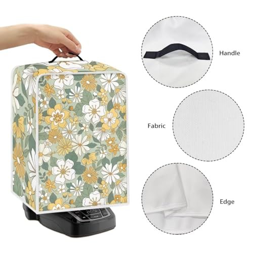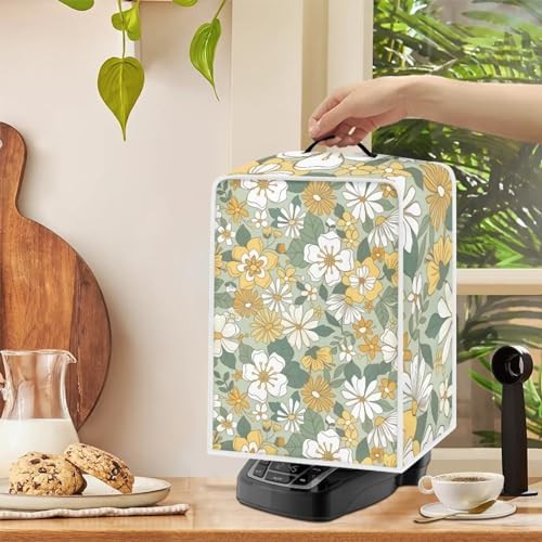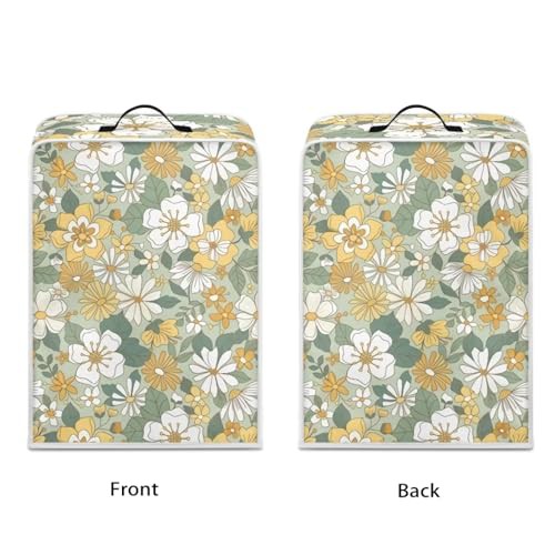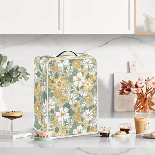 NETILGEN Coffee Maker Dustproof Cover Protective Cover Stain Resistant Dustproof Kitchen Small Appliance Cover with Top Handle for Home Indoor Decor, Yellow Green Flower