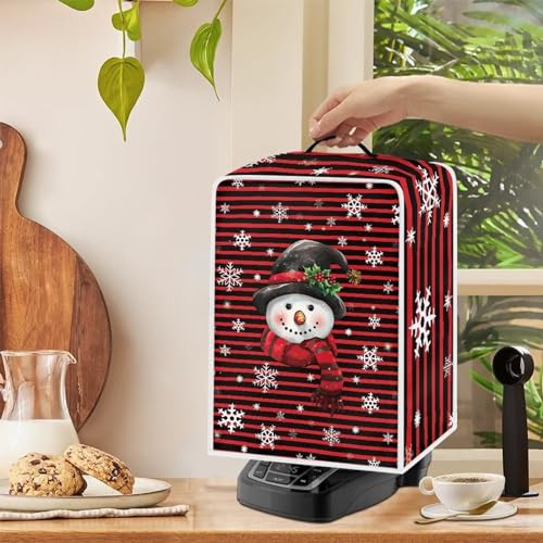 NETILGEN Kitchen Coffee Maker Dust Cover Stain Resistant Protector with Top Handle Design Heat-Resistant Dust Protection Anti-scratch for Juicer Cover Food Processor, Snowman Red Stripes