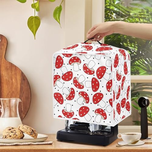 NETILGEN Kitchen Coffee Maker Dust Cover Dust Resistant Protector with Top Handle Design Heat-Resistant Dust Protection Anti-scratch for Juicer Cover Food Processor, Red Mushroom