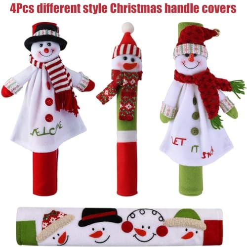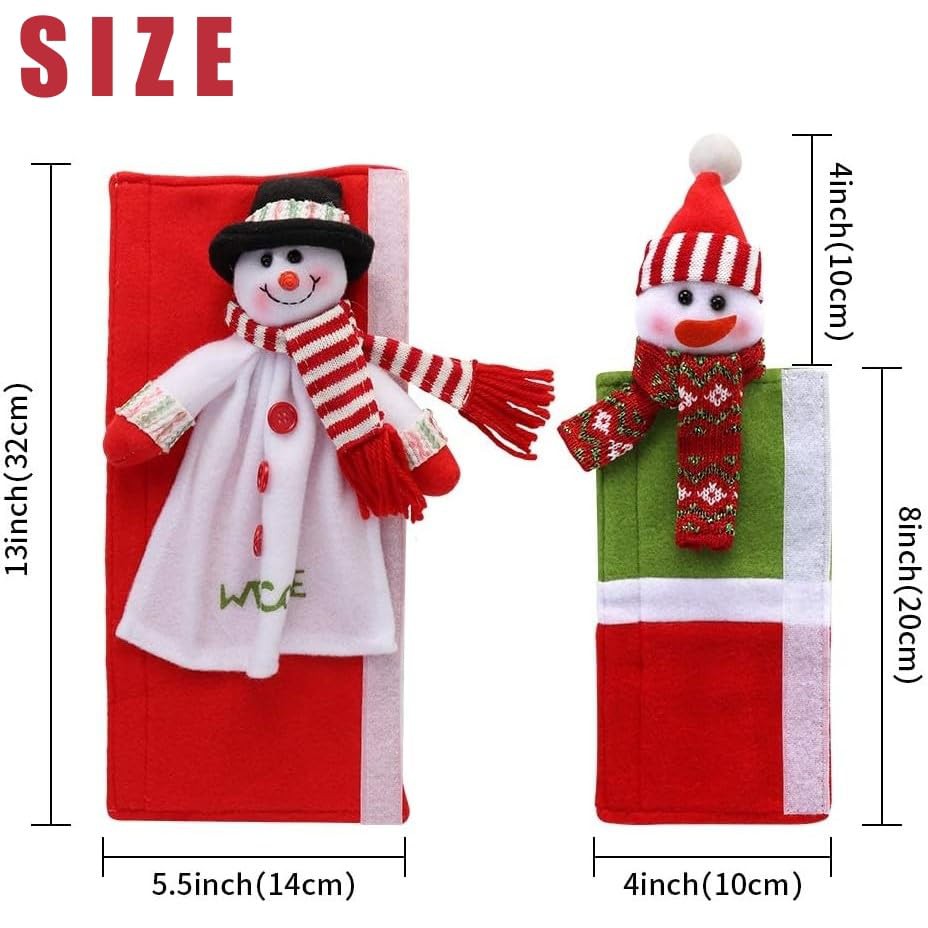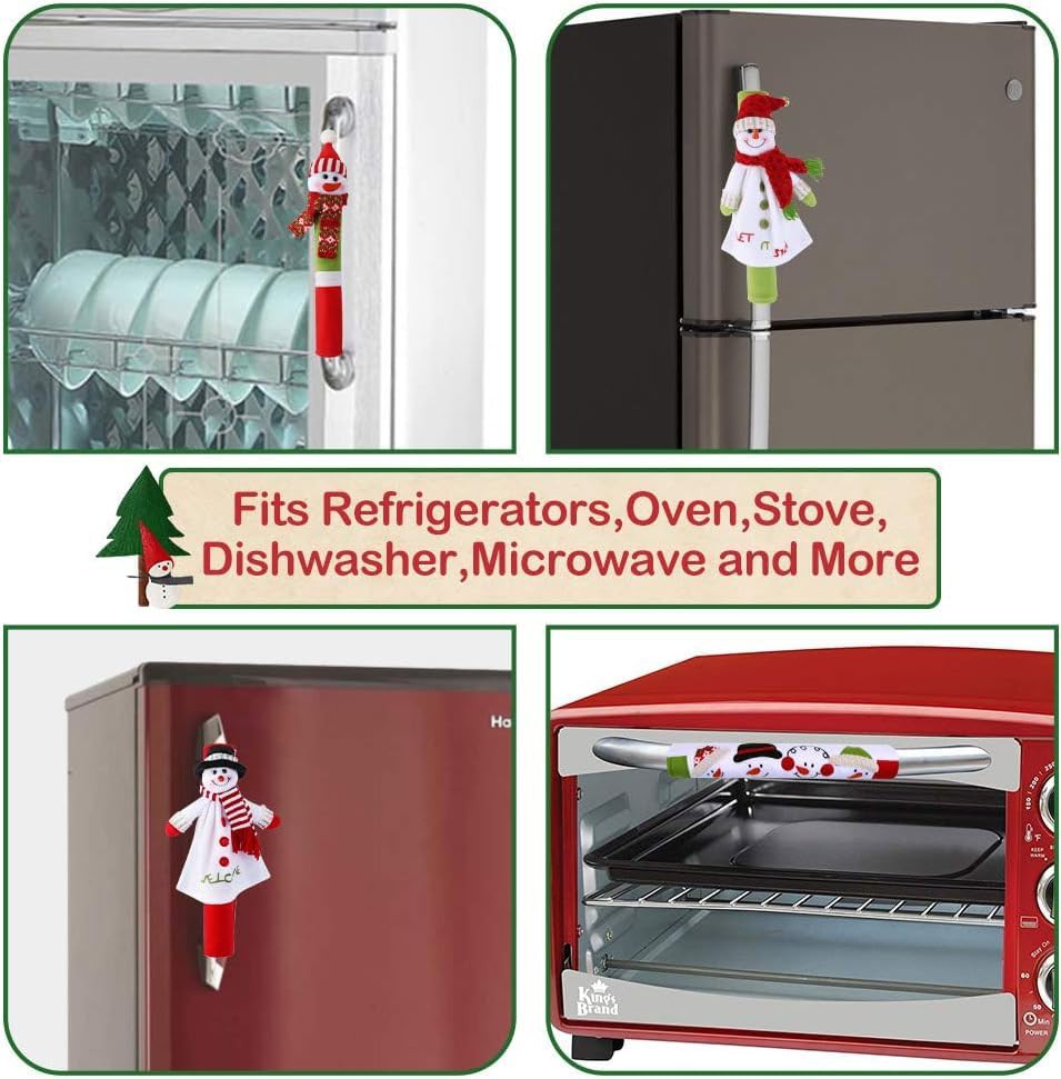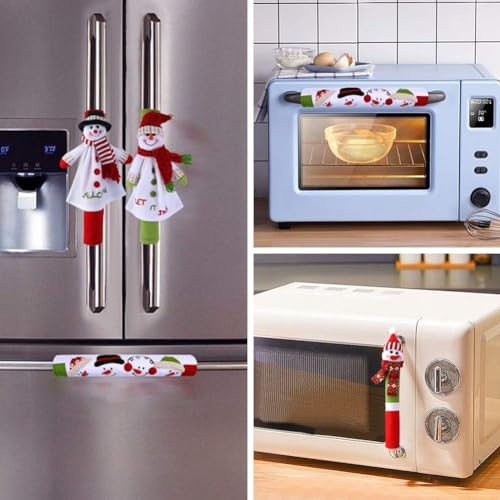 LATERN 4Pcs Refrigerator Handle Covers, 32CM Large Non-Woven Fridge Door Handle Cover 3D Snowman Appliance Handle Covers for Kitchen Xmas Decoration