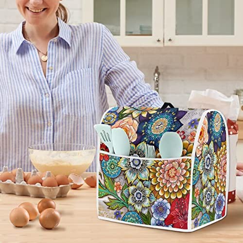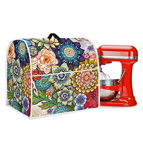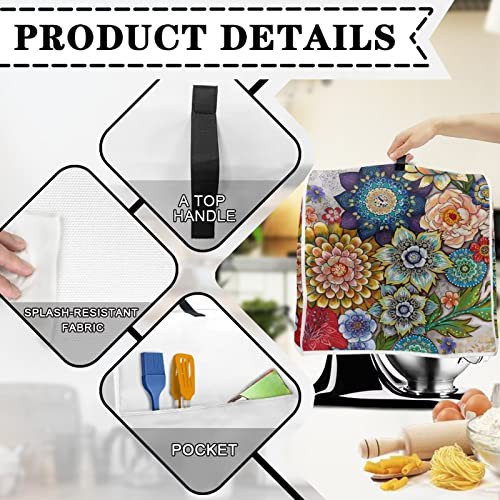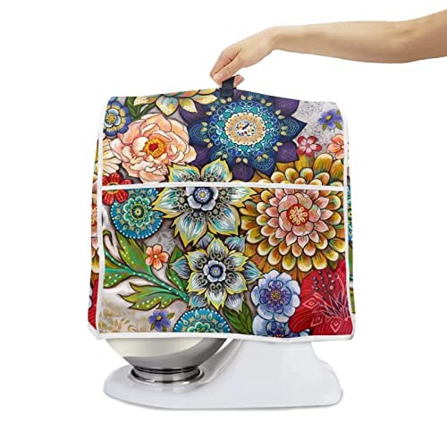 Hinthetall Boho Flower Stand Mixer Dust Cover With Pocket Soft Easy To Clean Blender Covers Stain Resistant Large Kitchen Appliance Covers Home Decoration Accessory-Large