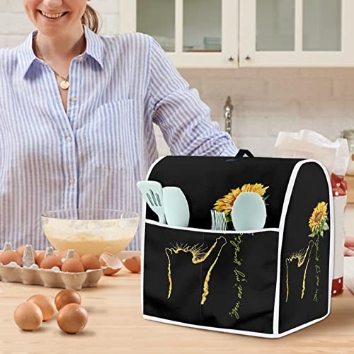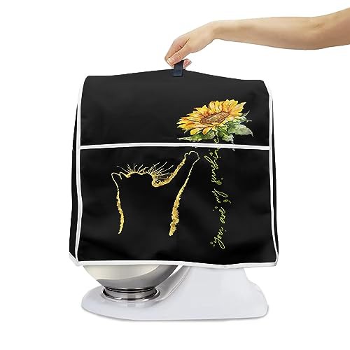 Hinthetall Cat Sunflower Kitchen Mixer Cover Stand Mixer Cover with Portable Top Handle Machine Washable Small Size Blender Cover for 4.5-5 Quart