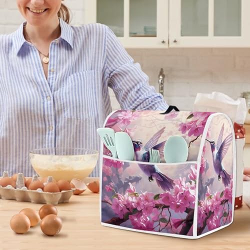 Hinthetall Pink Floral Hummingbird Stand Mixer Cover Compatible with Kitchen Aid Tilt Head 4.5-5 Quart,Dust Proof Appliance Cover with Pocket for Kitchen Aid Mixer Accessories