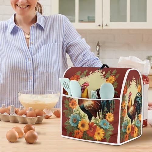 Hinthetall Sunflower Rooster Stand Mixer Cover Small Appliance Covers for Kitchen Counter Mixer Cover Dust Cover Kitchen Juicer Attachment Kitchen Bowl Cover