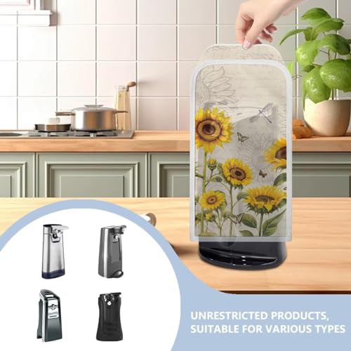 NETILGEN Can Opener Cover Kitchen Electric Appliance Cover Stain Resistant Machine Washable Oil-Proof for Housewarming Home Kitchen Decoration Gift for Wife, Sunflower Dragonfly Retro