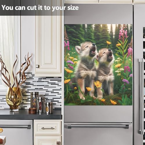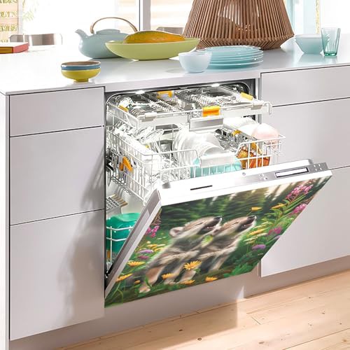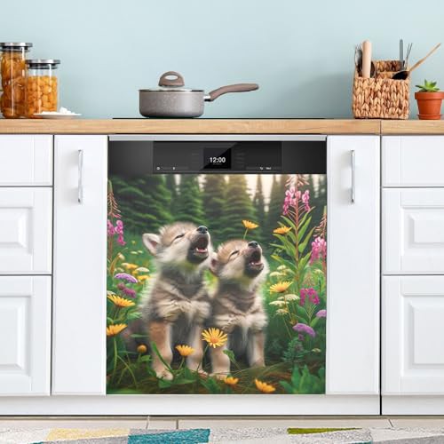 Howling Wolf Meadow Dishwasher Magnetic Cover Dishwasher Sticker Kitchen Cabinet Panels Home Kitchen Decoration, 26H x 23W Inches