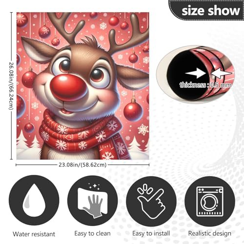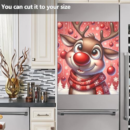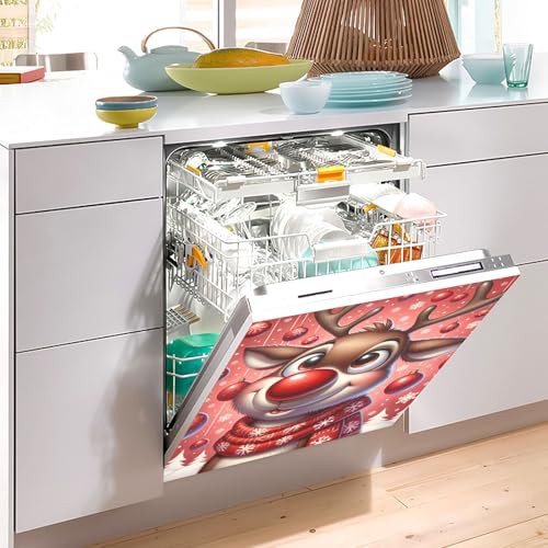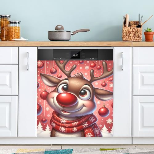 Festive Reindeer Red Dishwasher Magnetic Covers Refrigerator Panels Kitchen Cabinet Decor Cute Farmhouse Décor, 26" x 23"