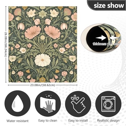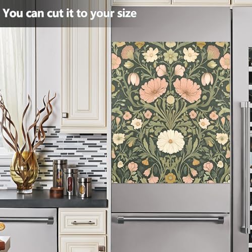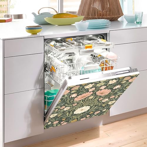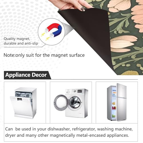 Beautiful Floral Floral Dark Green Dishwasher Magnetic Covers Refrigerator Panels Kitchen Cabinet Decor Wash Machine Fridge Panel Decal for Kitchen Appliance, 26" x 23"