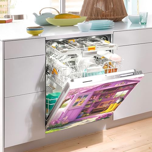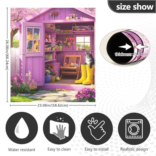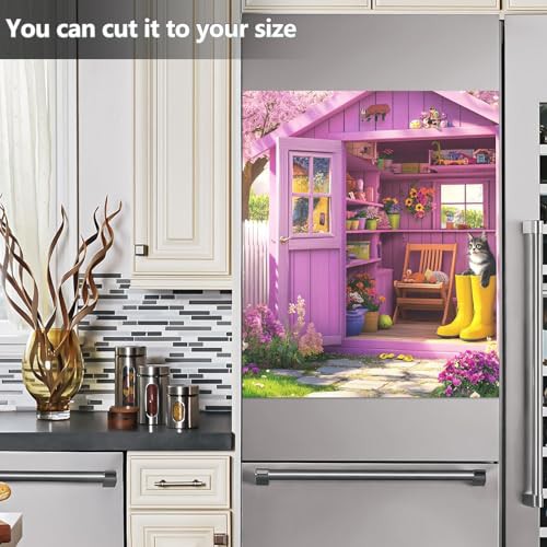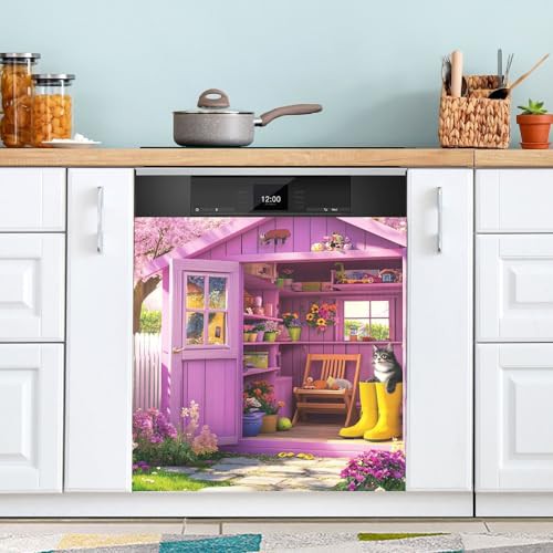 Garden Shed Blooming Flowers Cat Dishwasher Magnetic Covers Decorative Refrigerator Covers Wash Machine Fridge Panel Decal for Kitchen Appliance, 26H x 23W Inches
