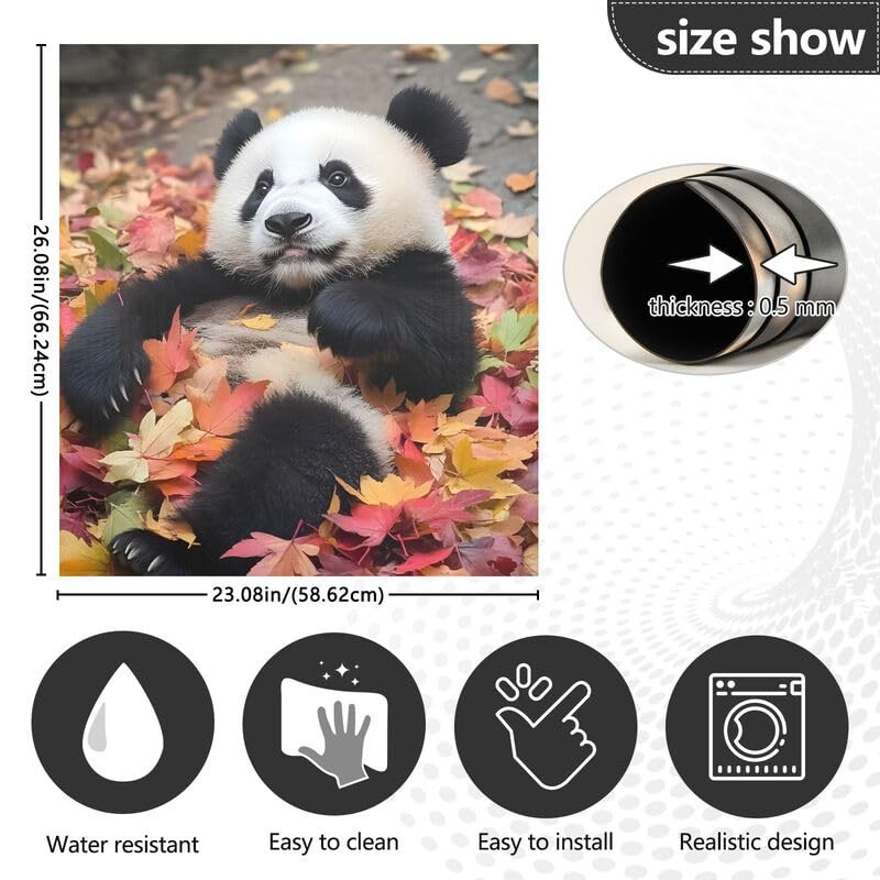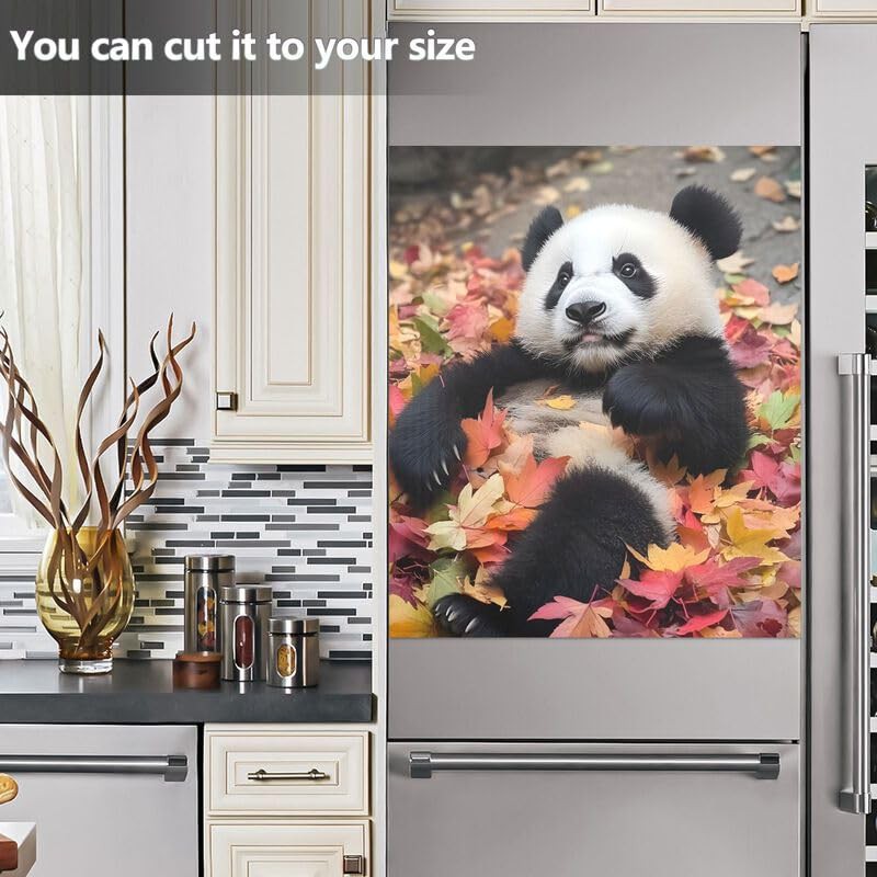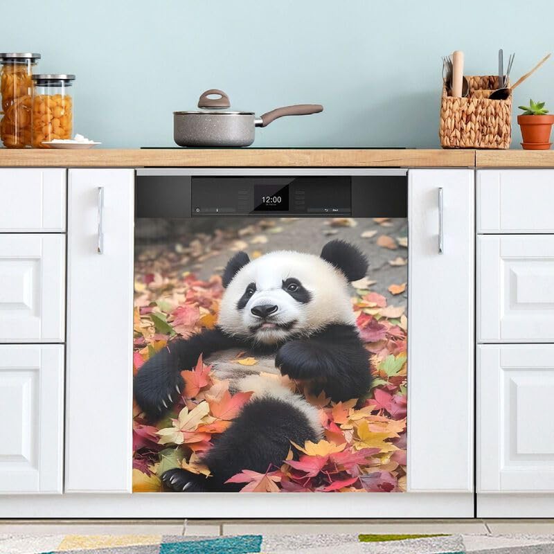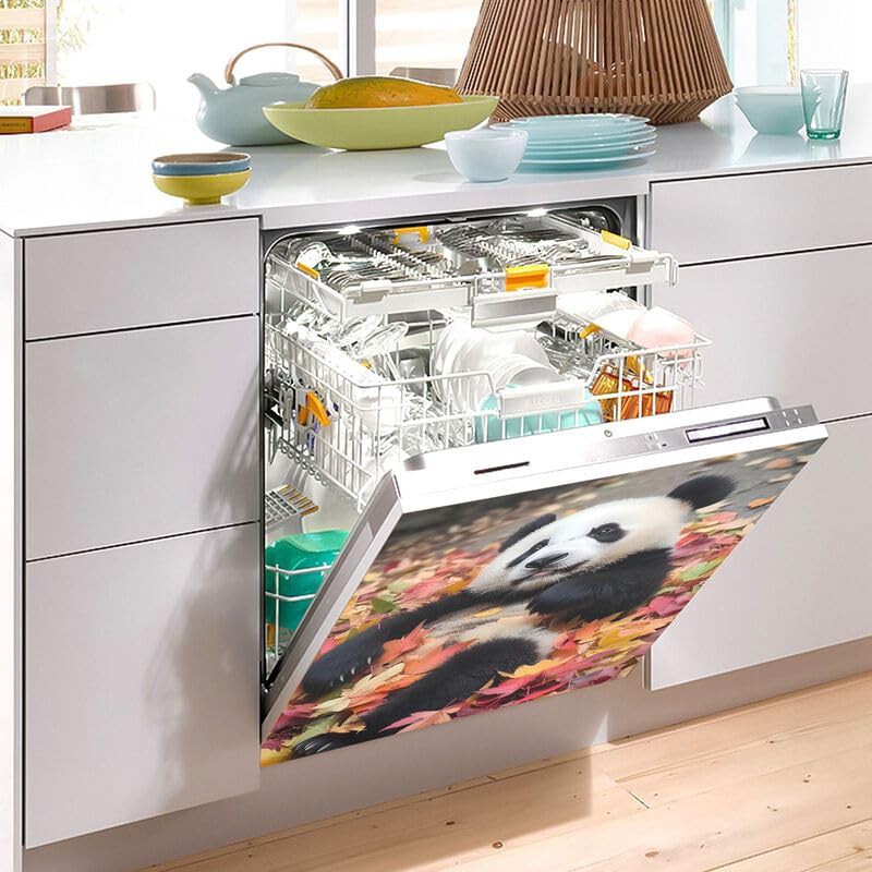 Cute Panda Autumn Leaves Dishwasher Magnetic Cover Refrigerator Home Cabinet Appliances Stickers Reusable Home Decorations Vinyl Sticker, 26H x 23W Inches