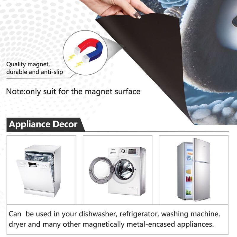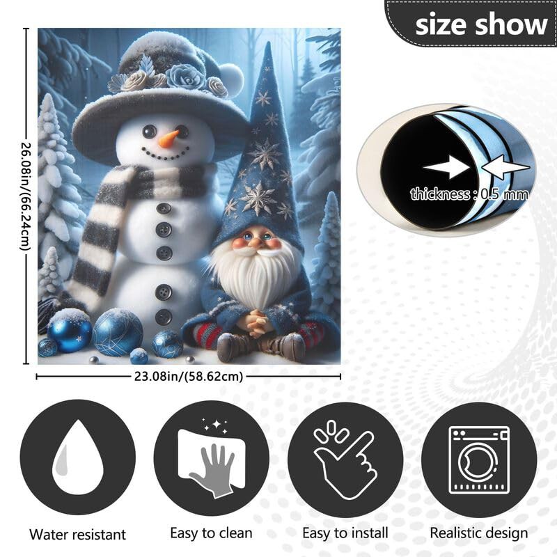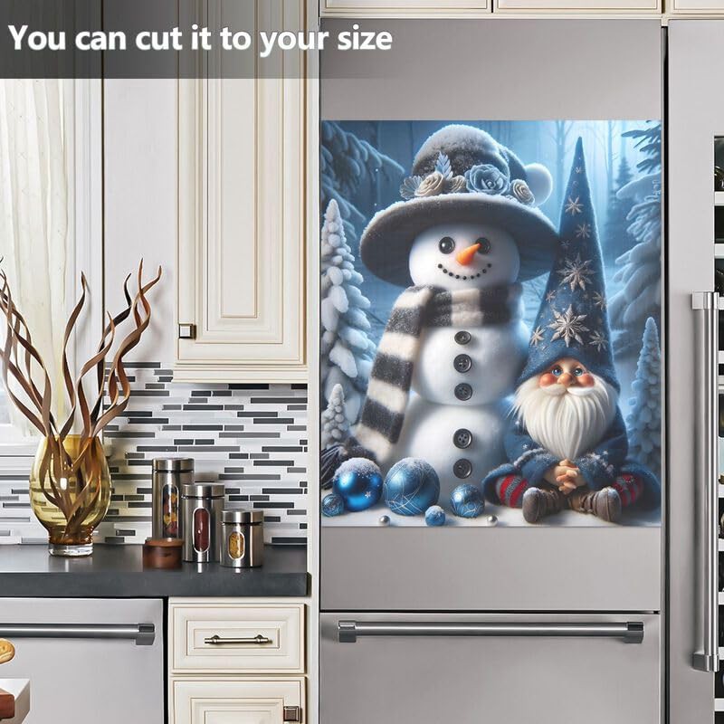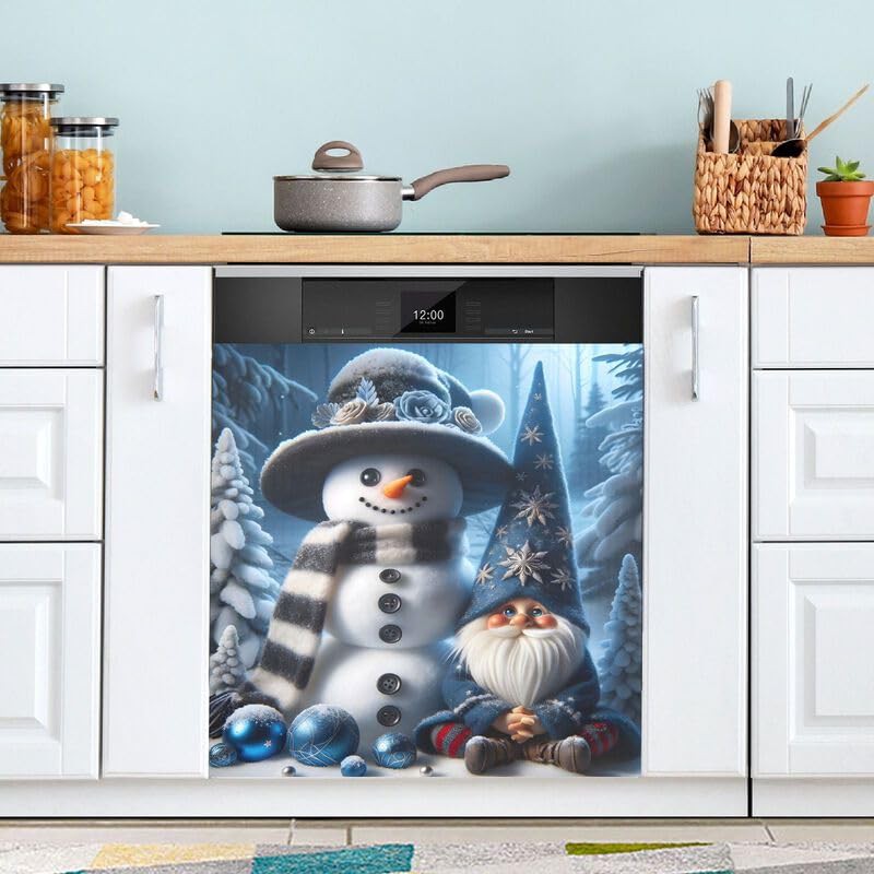 Winter Sonwman Gnome Deep Blue Dishwasher Magnetic Covers Refrigerator Washing Machine Door Cover Home Kitchen Decoration, 26H x 23W Inches