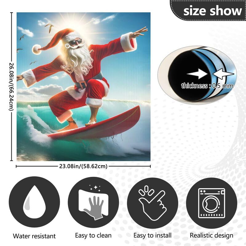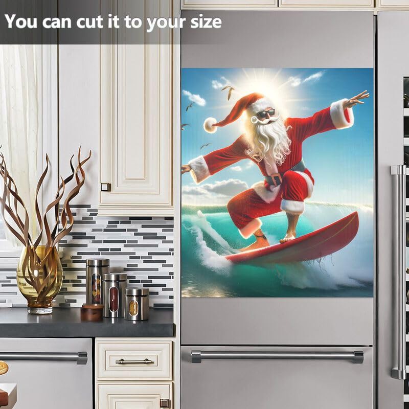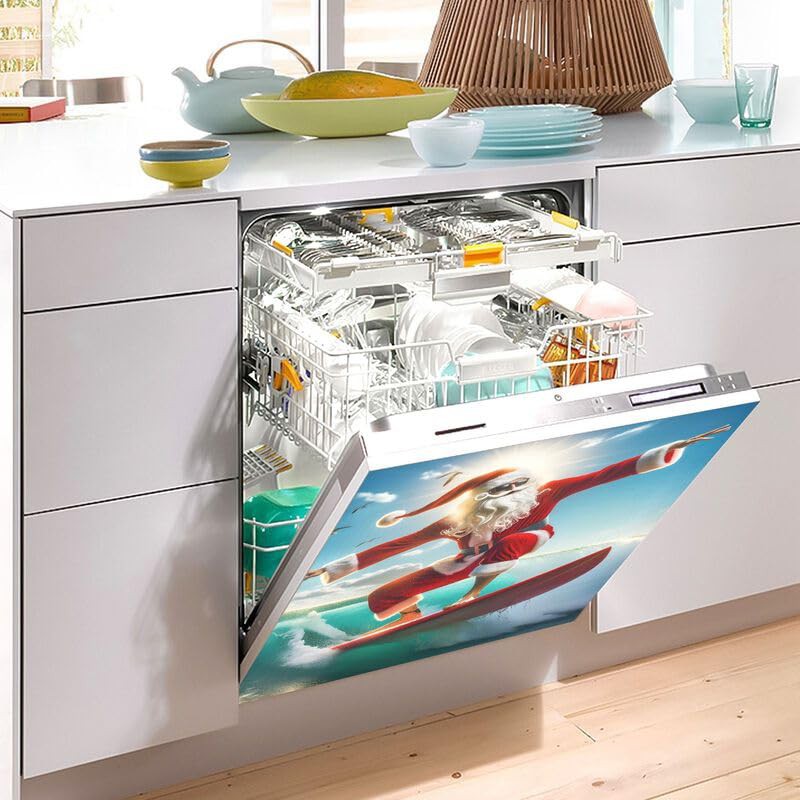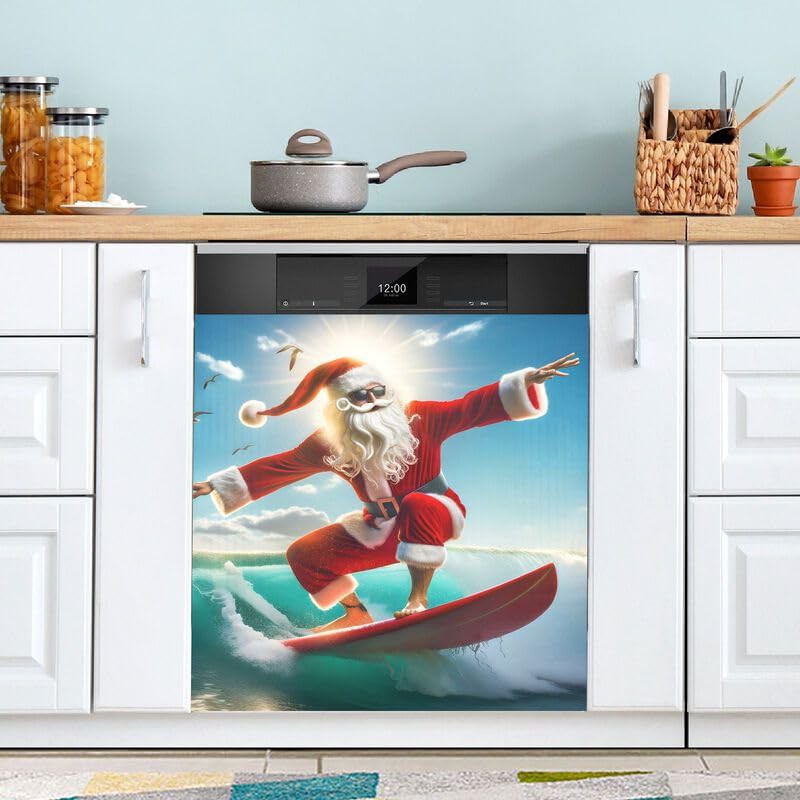 Santa Claus Surfing Waves Dishwasher Magnetic Cover Decorative Refrigerator Covers Home Kitchen Decoration, 26H x 23W Inches