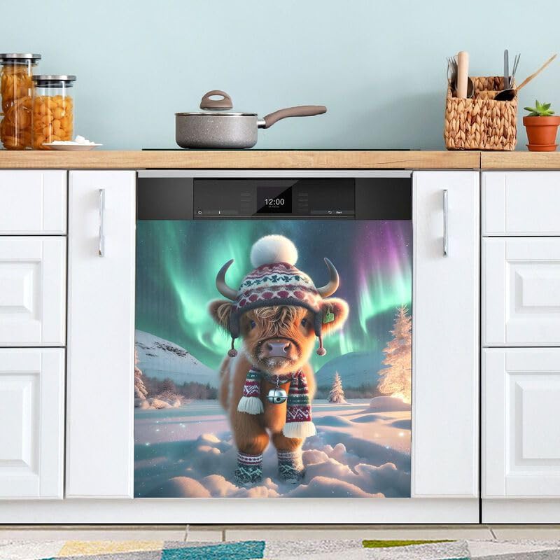 Charming Cow Winter Wonderland Dishwasher Magnetic Cover Magnetic Sheet Sticker Cute Farmhouse Décor, 26" x 23"