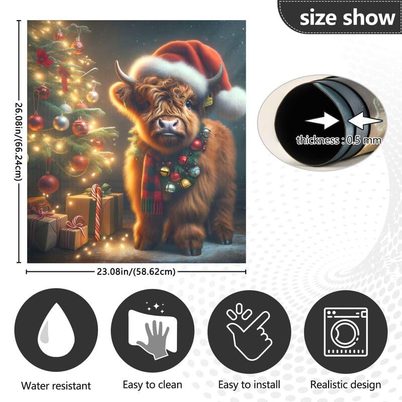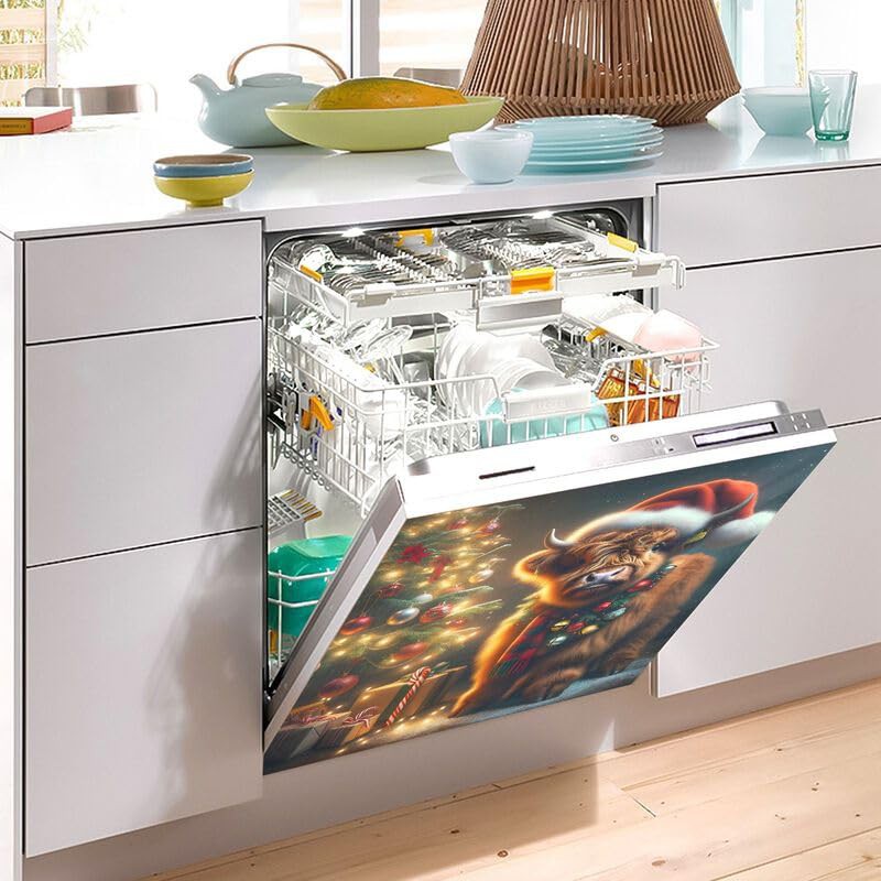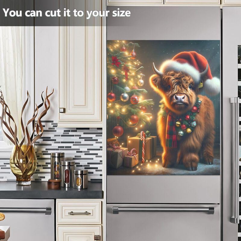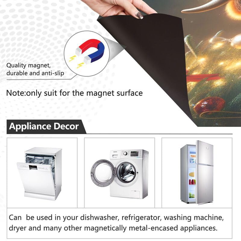 Cow Christmas Hat Dishwasher Magnetic Cover Decorative Refrigerator Covers Reusable Home Decorations Vinyl Sticker, 26H x 23W Inches